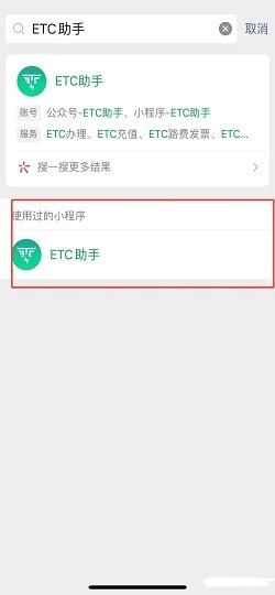 首先打开微信,在微信里搜索“ETC助手”小程序
